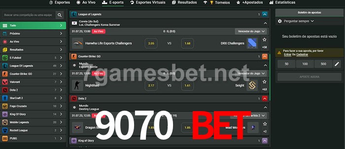 O 9070 Bet oferece uma grande seleção de opções de apostas em e-sports com probabilidades competitivas